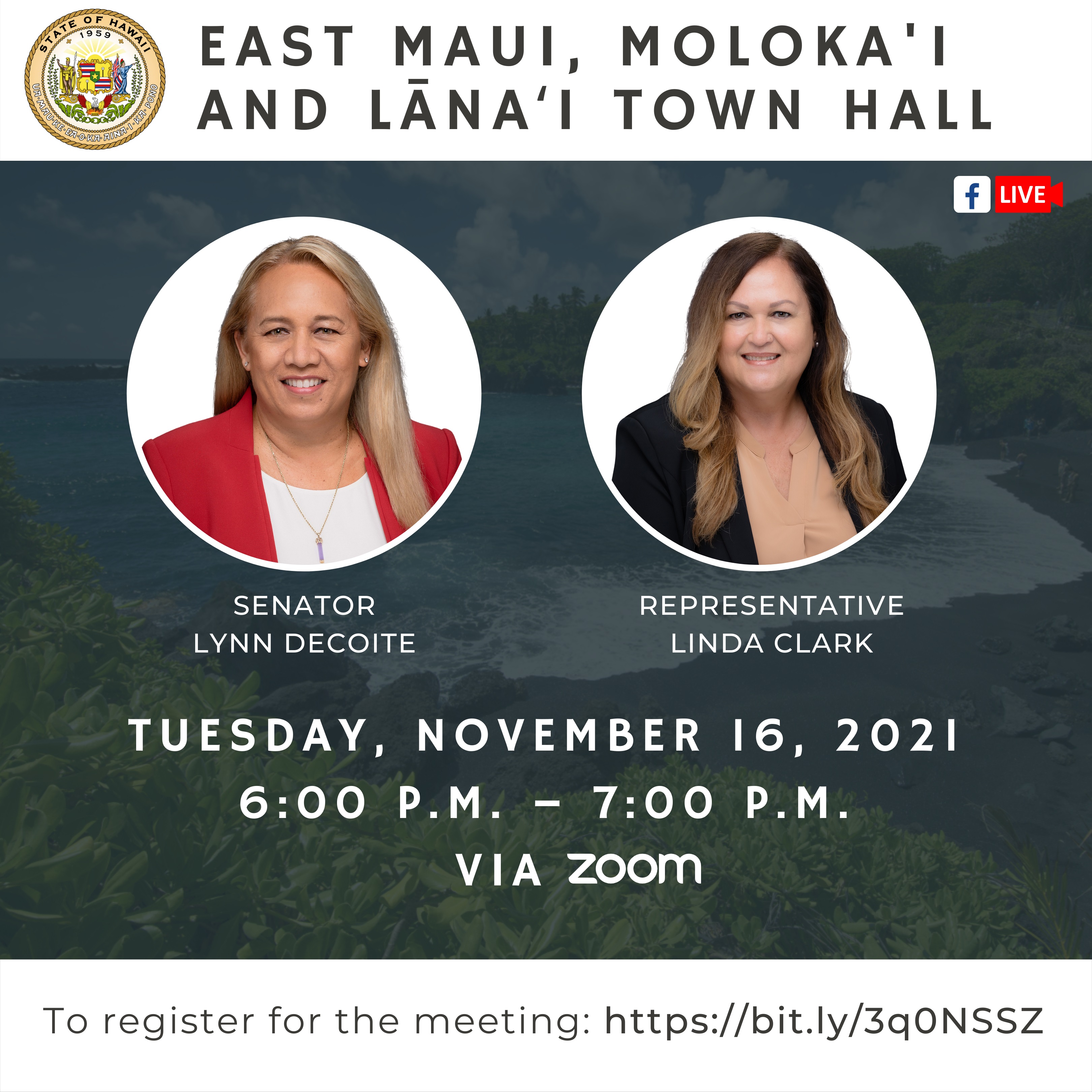Inviting all District 13 residents (from East Maui, Molokai, and Lanai) to our virtual talk story session / town hall meeting!