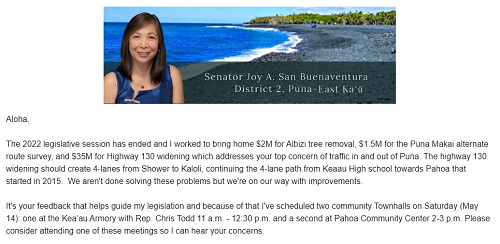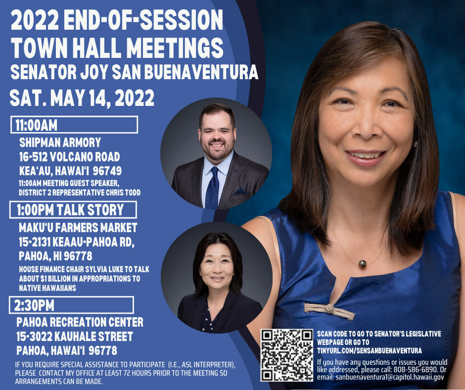 going to look very different," said Puna Rep. Joy San Buenaventura,