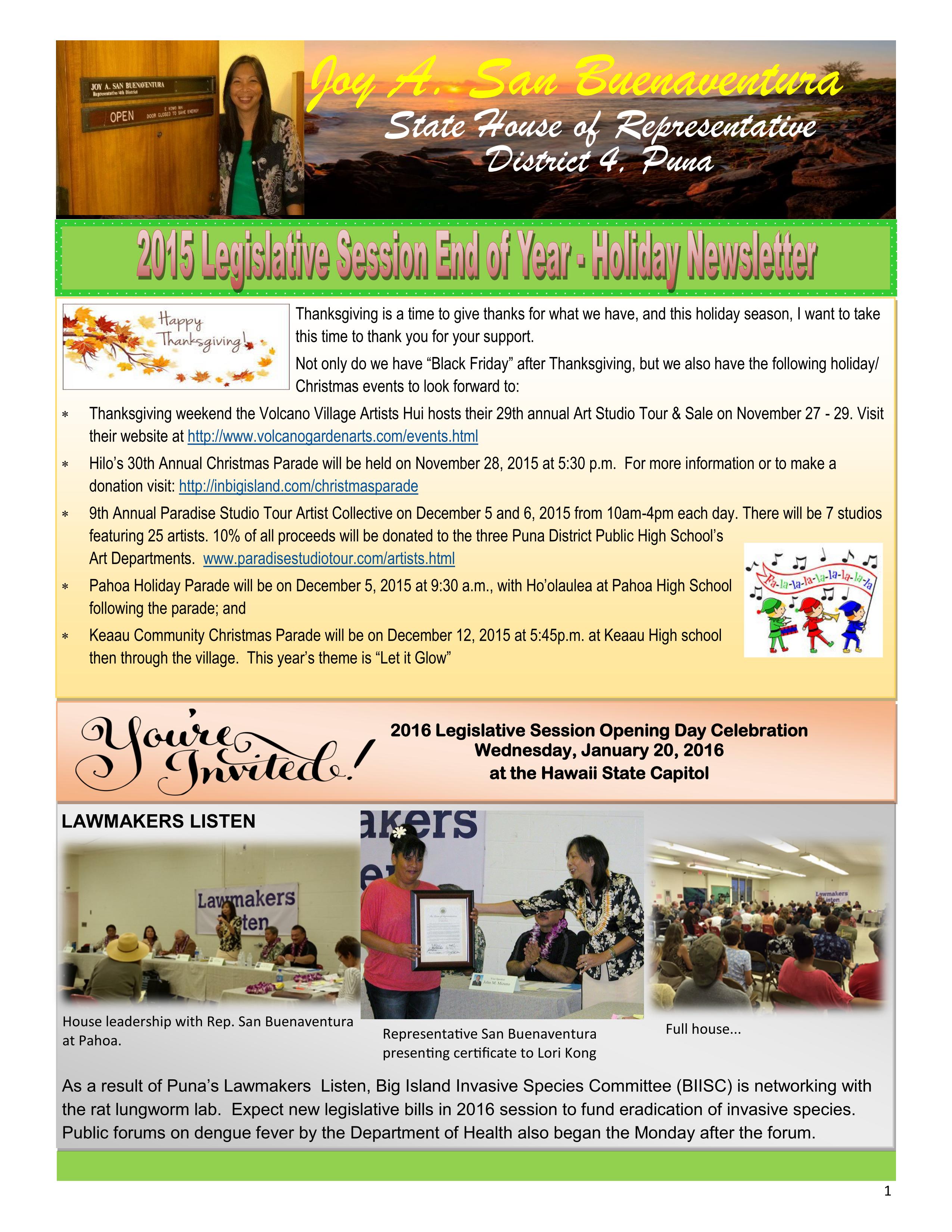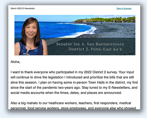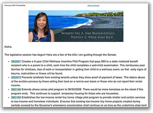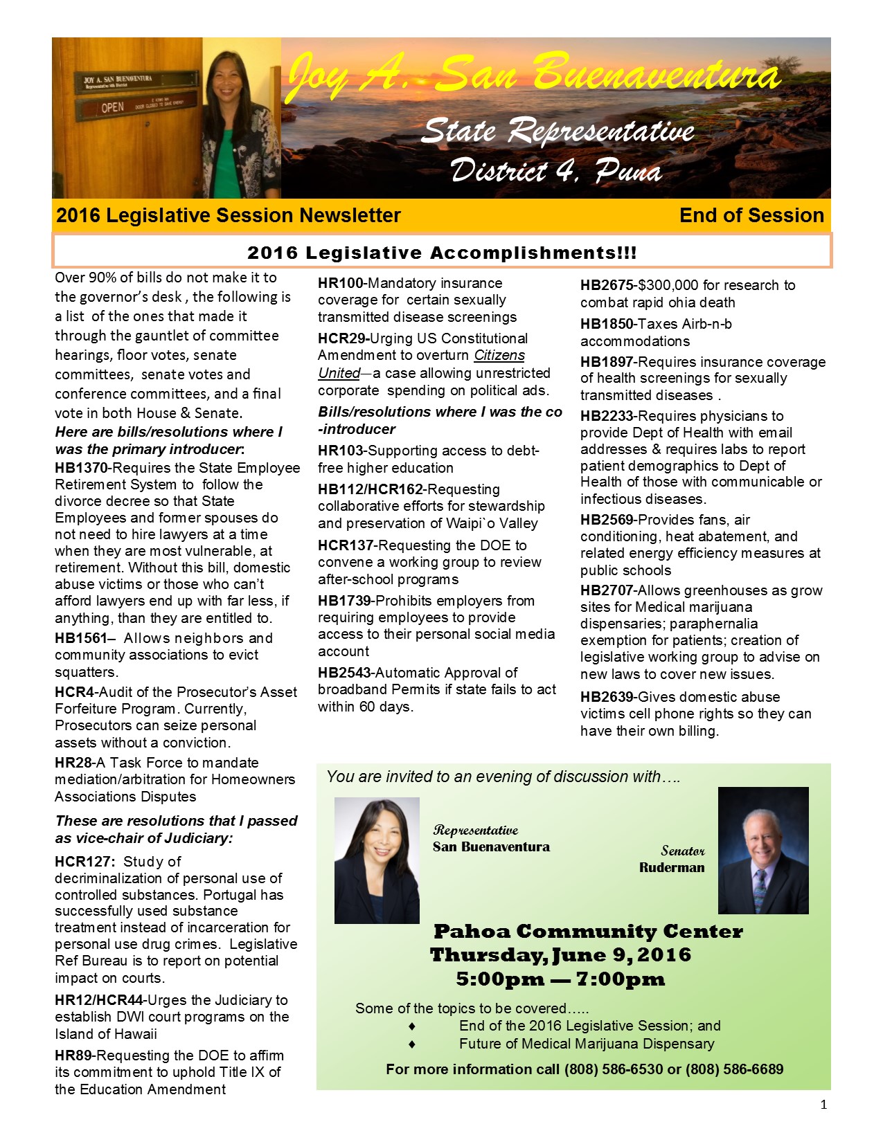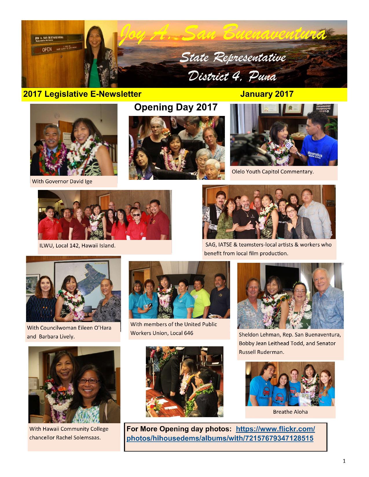 E-Newsletter Update from the Office of Representative Joy San Buenaventura