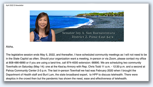 COVID-19 E-Newsletter for April 22, 2020 from the office of Representative Joy San Buenaventura.