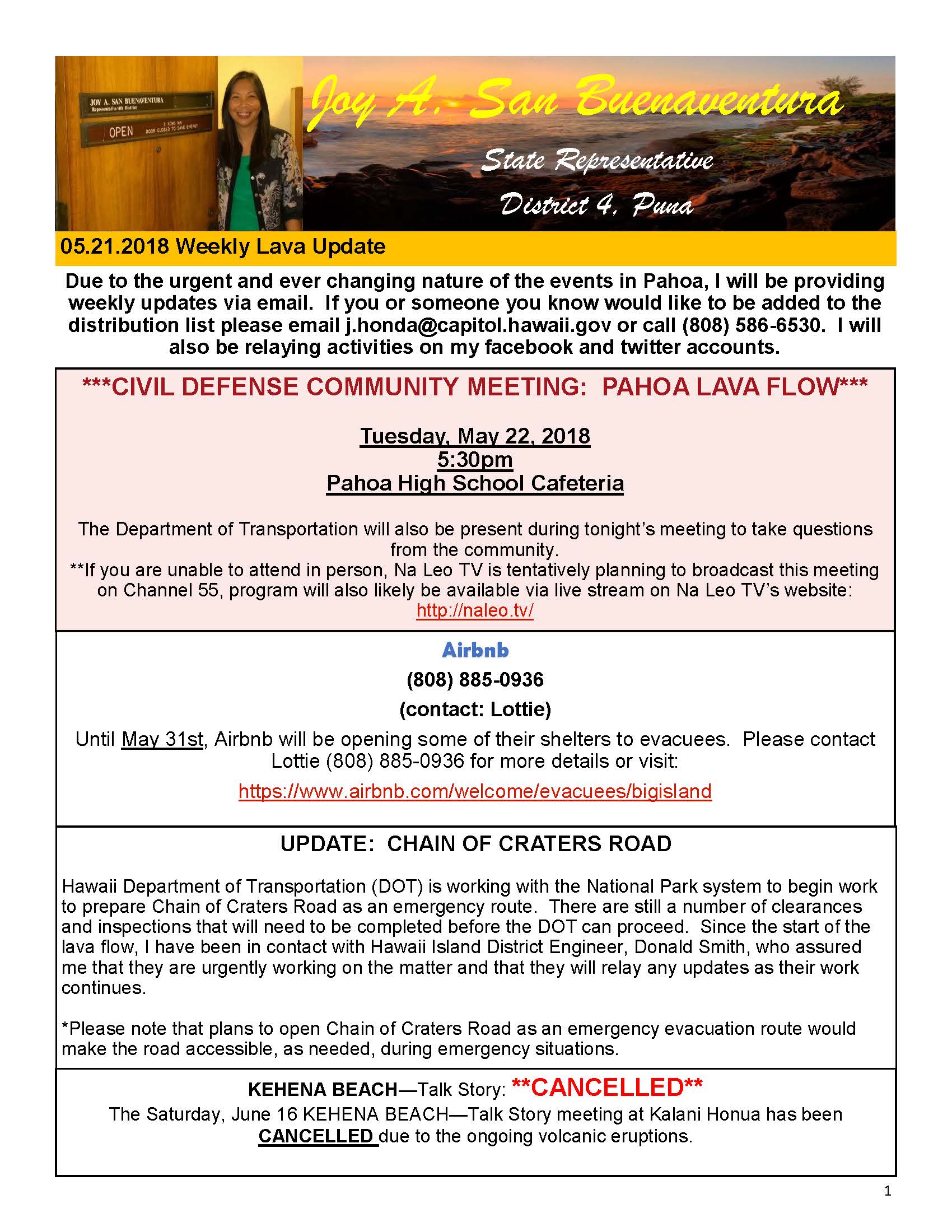 Monday (May 26) I joined fellow legislators Rep Della Au Belatti and Rep Nadine Nakamura for a meeting of the