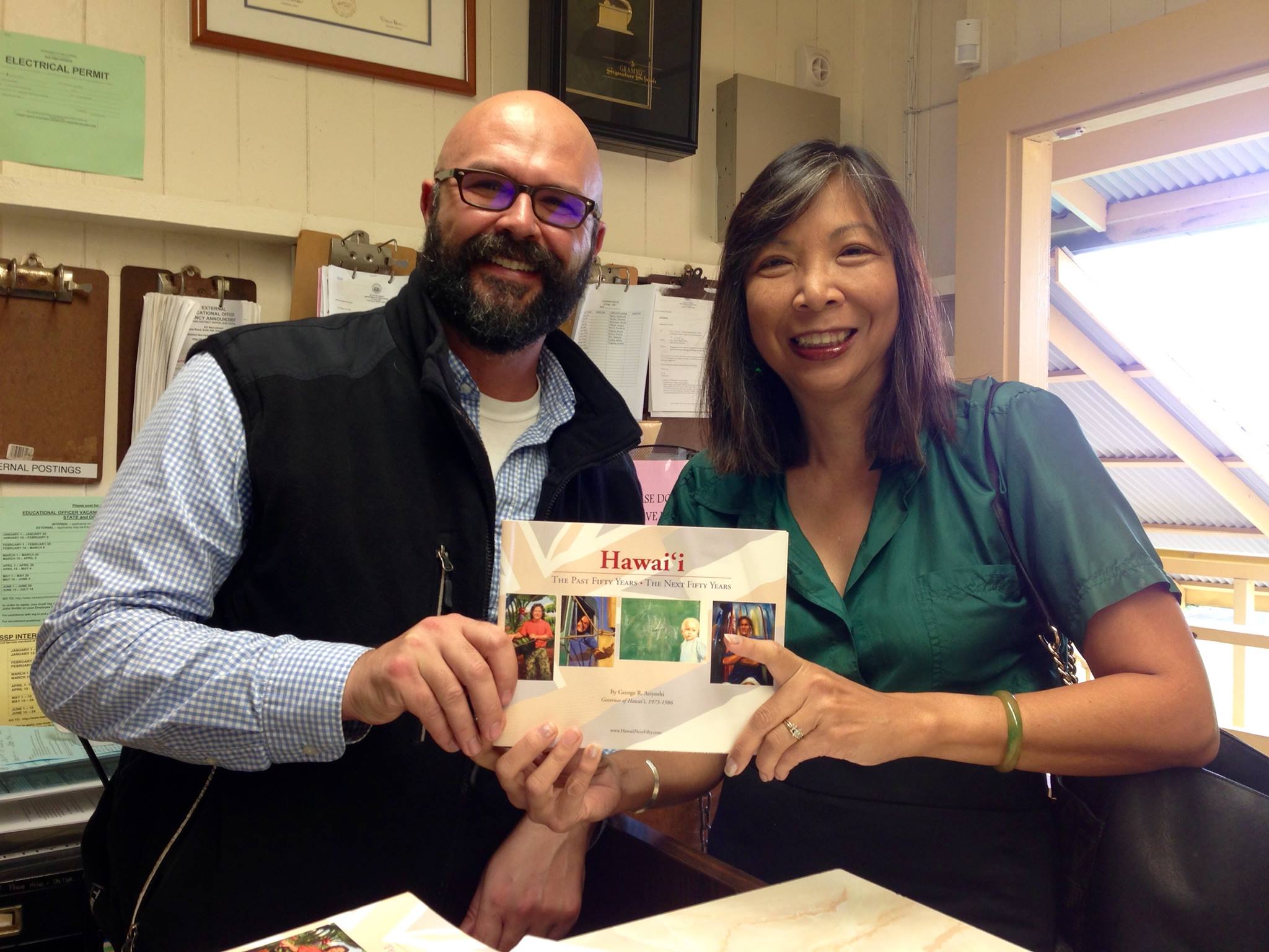 Stopped by Pahoa High & Intermediate school this morning to drop of Governor George Ariyoshi's book, Hawaii: The Past Fifty Years, The Next Fifty Years to a 7th grade class.