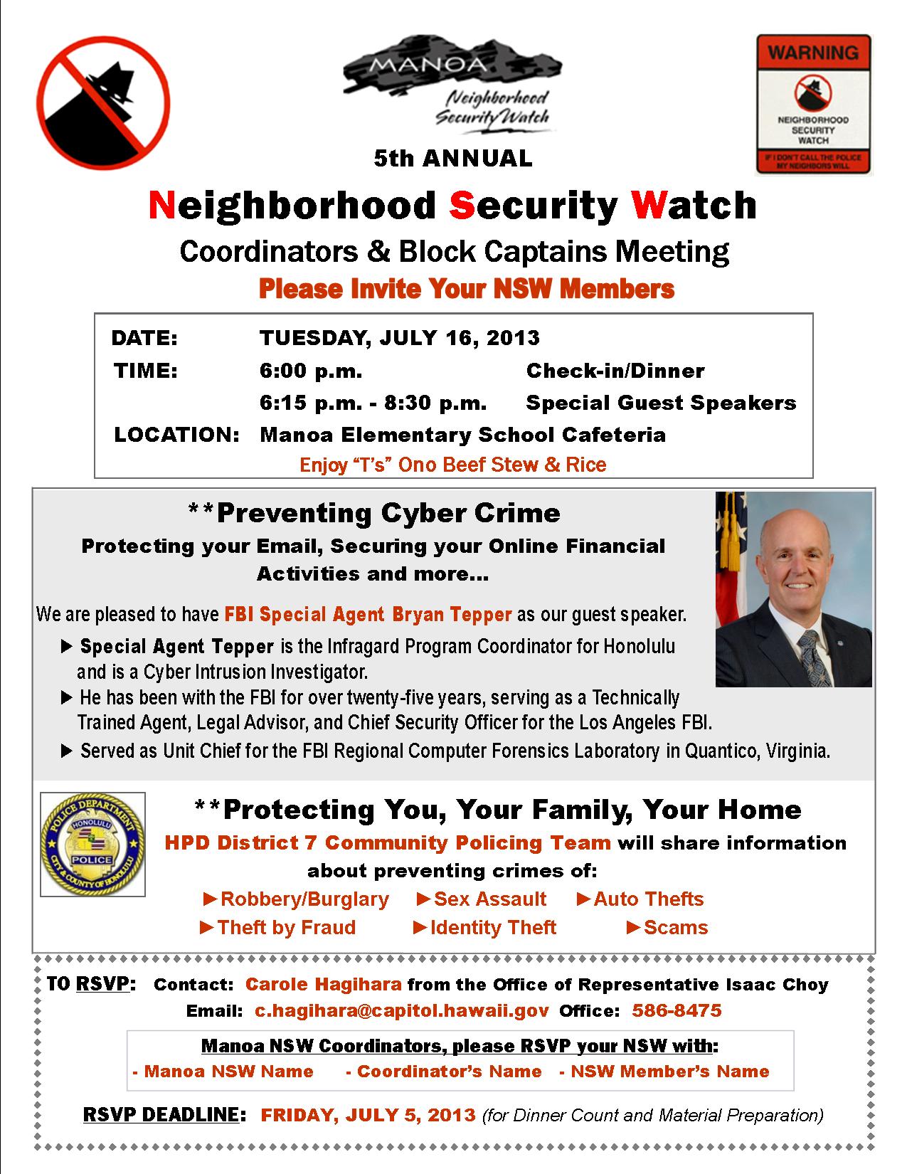 4th Annual Manoa Neighborhood Security Watch Coordinators and Block Captains Meeting - Tuesday, July 17, 2012