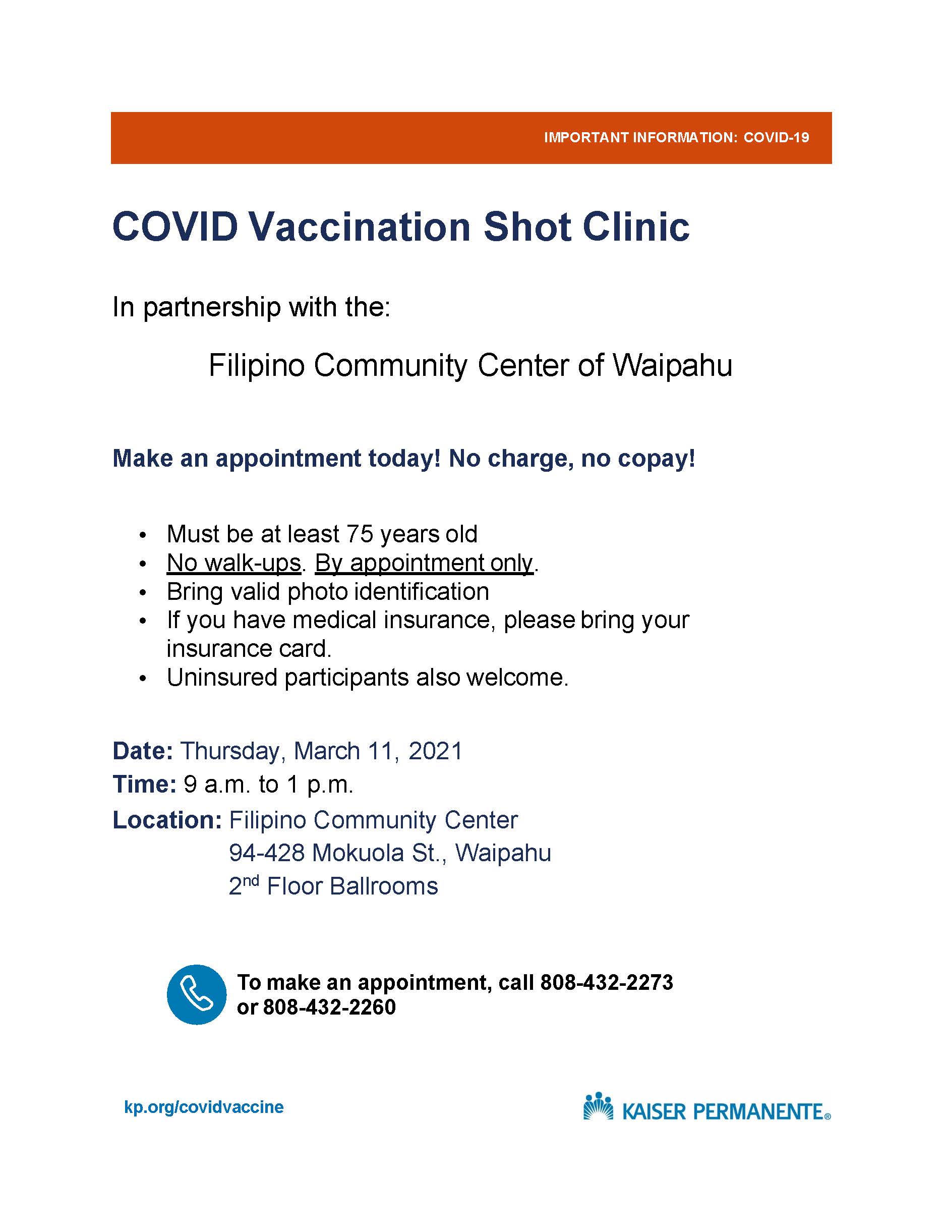 FilCom Covid Vaccination Clinic for 75 Years & Older