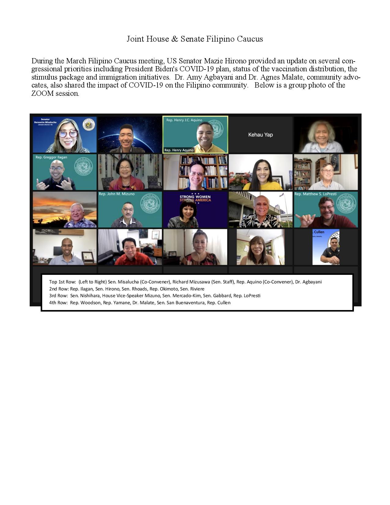 On January 14, 2021 Rep. Henry Aquino, Gov. David Ige, fellow legislators representing