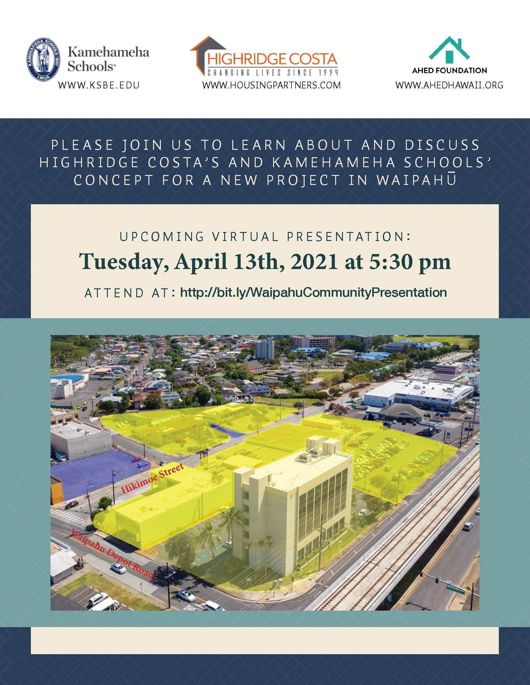 4/13/21 Virtual Presentation - Highridge Costa's & Kamehameha Schools Concept for a New Waipahu Project